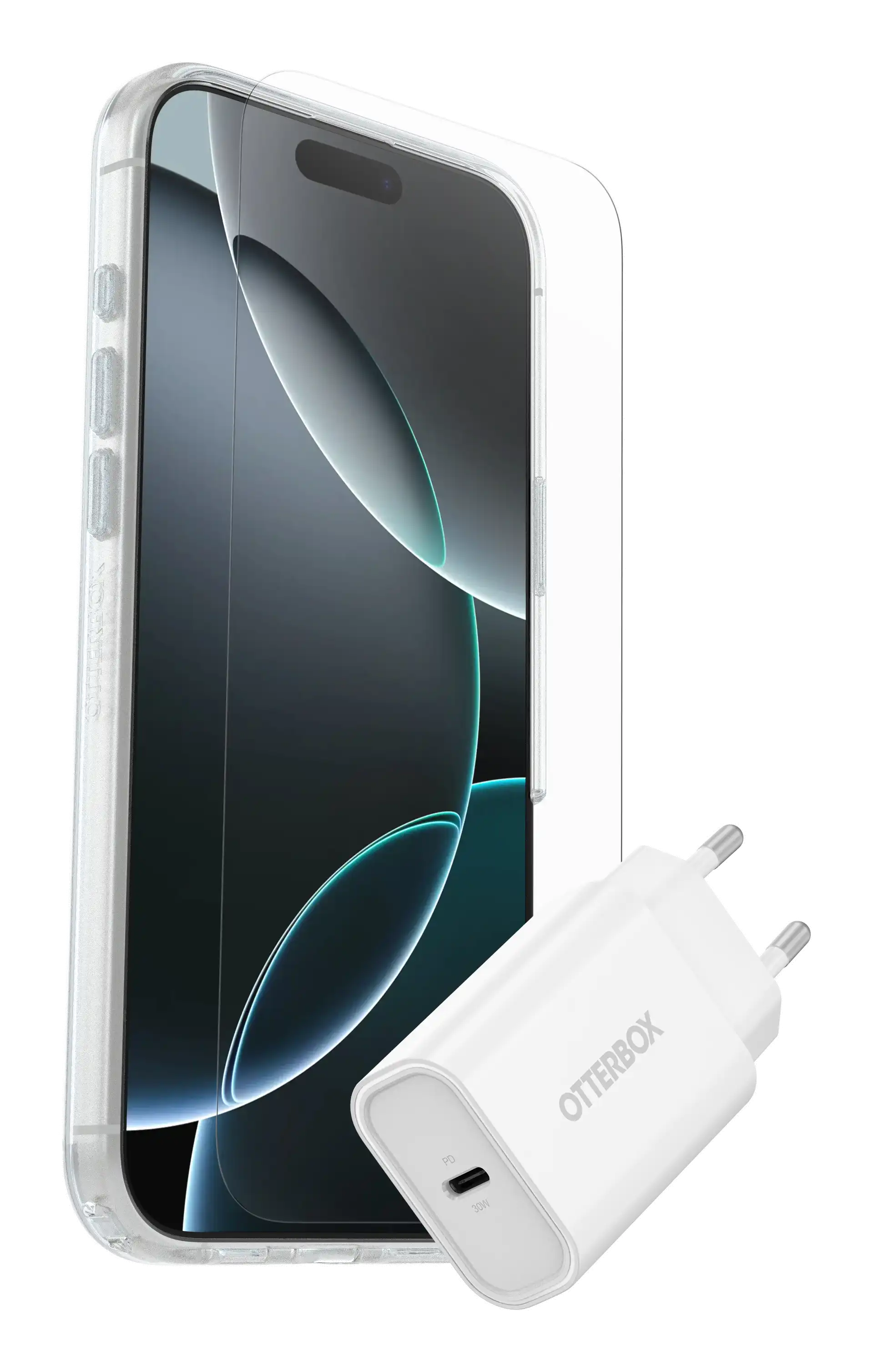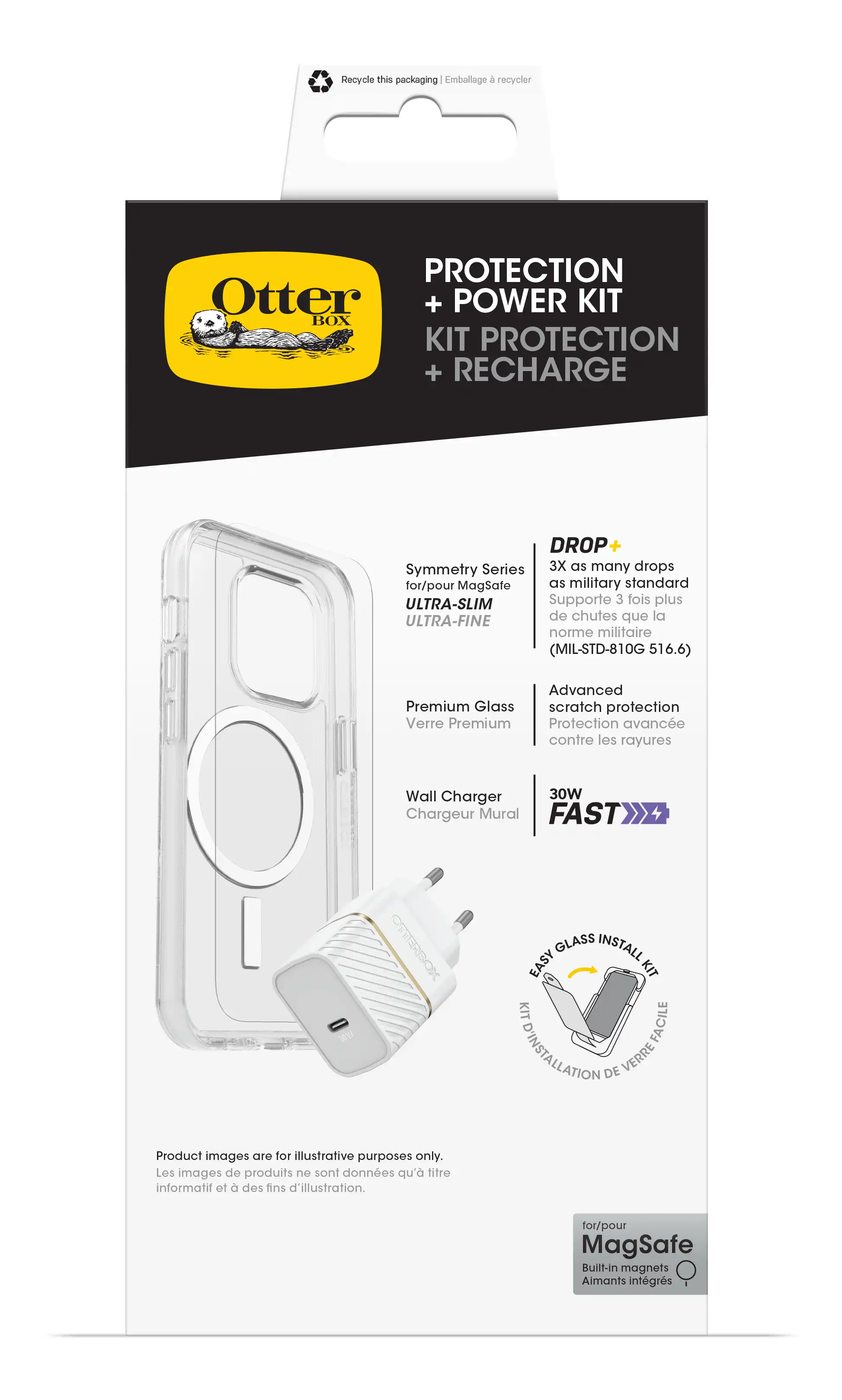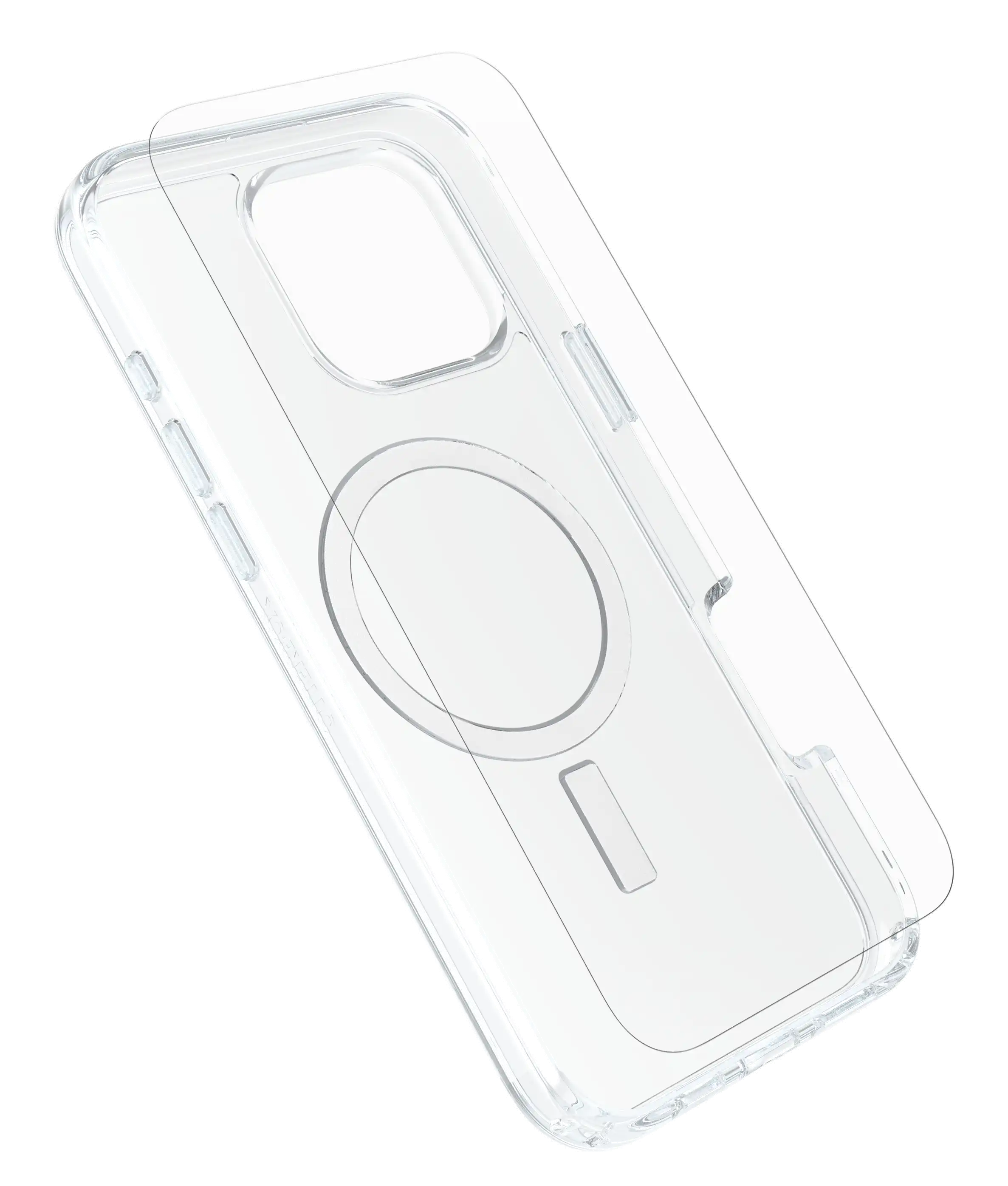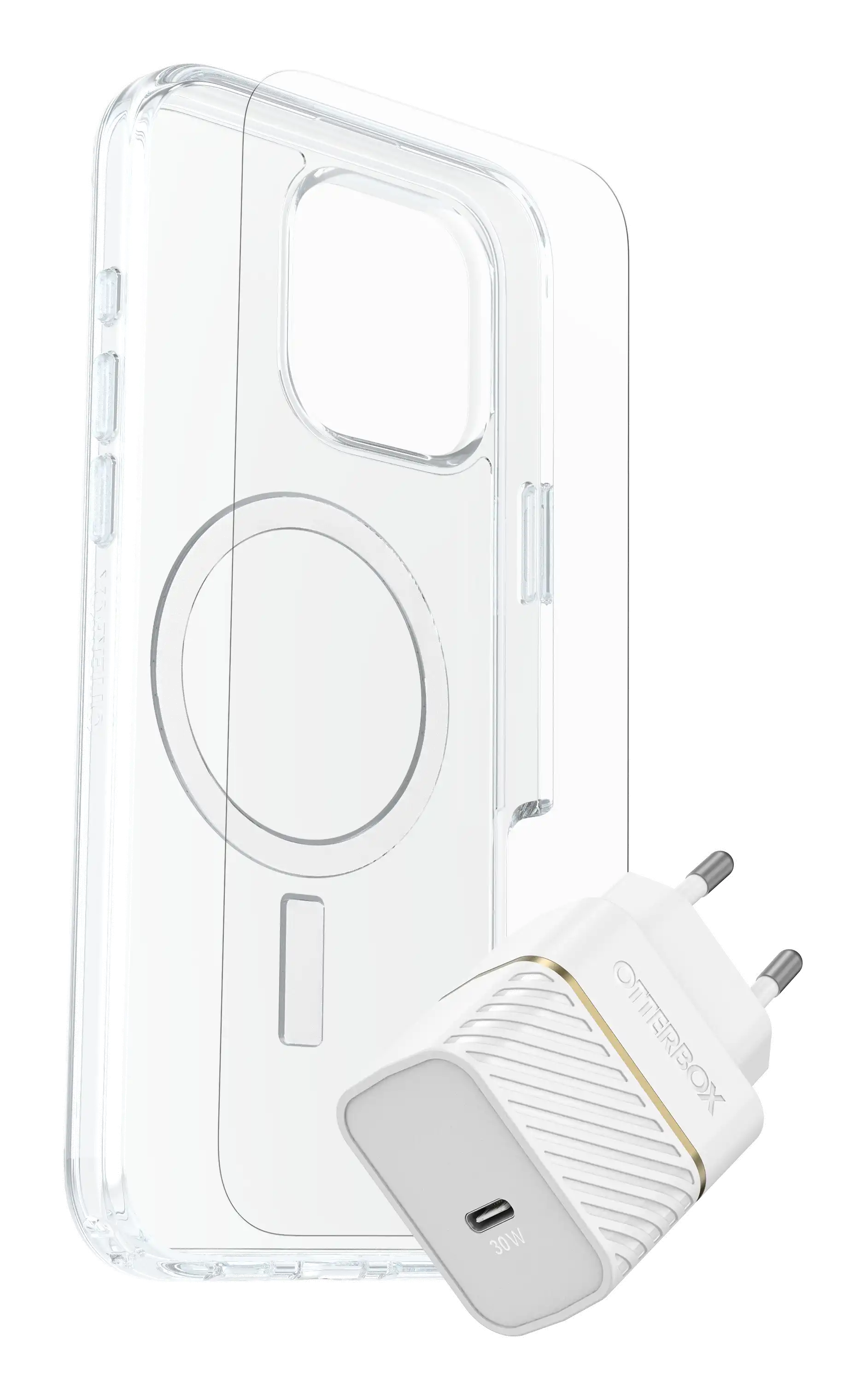 Symmetry Series Clear - Hintere Abdeckung für Mobiltelefon - kompatibel mit MagSafe - klar - mit Premium Glas-Displayschutz und Schnelllade-Wandladegerät USB-C