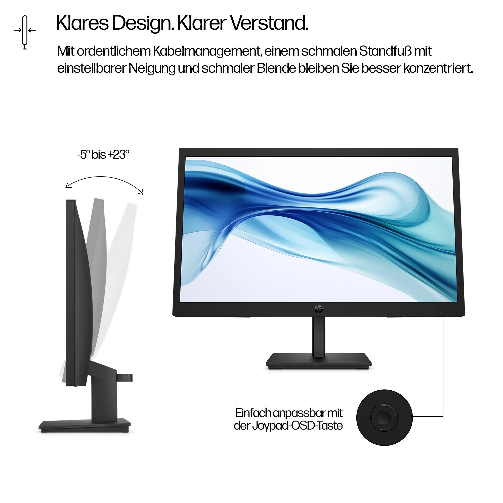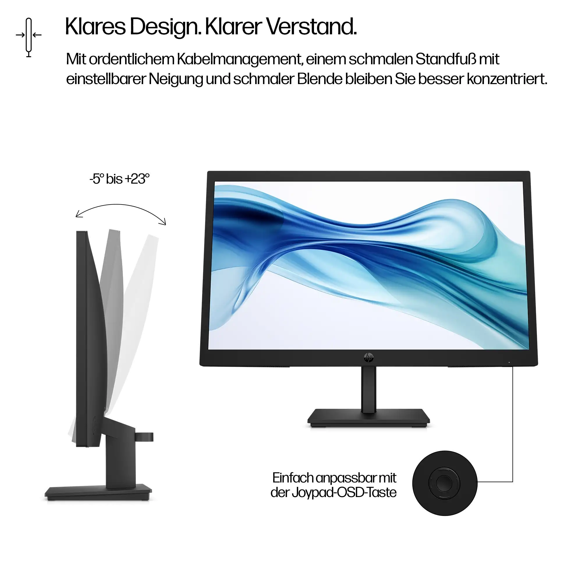 Justierbarer Neigungswinkel Mit dem schmalen, neigungsverstellbaren Ständer finden Sie den richtigen Winkel – für maximale Produktivität und höchsten Komfort beim Arbeiten.