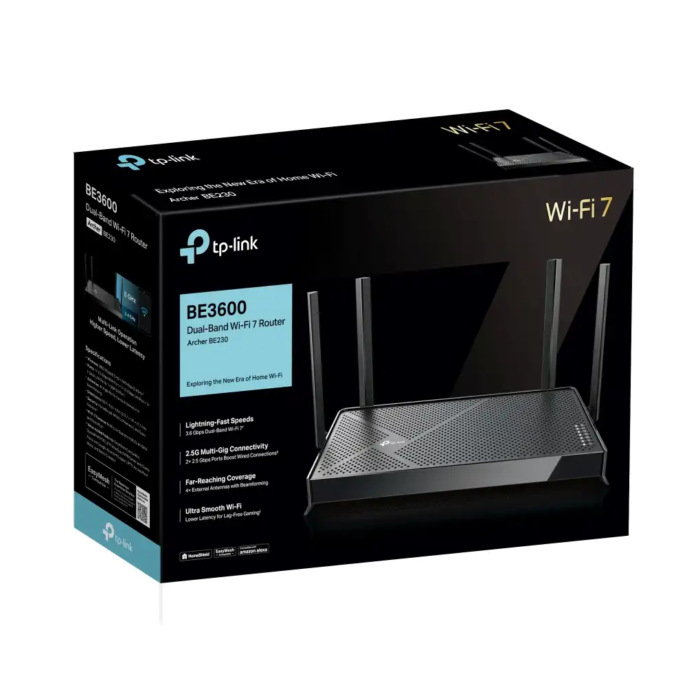Erleben Sie Hochgeschwindigkeits-Internetverbindungen mit dem TP-Link Archer BE230 V1, einem drahtlosen Router, der für die Anforderungen eines sicheren und intelligenten Heimnetzwerks entwickelt wurde. Dieser Router kombiniert Wi-Fi 6-Technologie und 2,5-Gigabit-Ethernet-Konnektivität und sorgt dafür, dass jedes Gerät in Ihrem Netzwerk schnelle und stabile Verbindungen genießt. Mit einer Datenübertragungsrate von bis zu 3,6 Gbit/s sind Streaming, Spiele und Downloads so reibungslos wie nie zuvor. Sicherheit hat Priorität, und der Archer BE230 V1 zeichnet sich in diesem Bereich durch WPA3-Verschlüsselung, ACL-Unterstützung (Access Control List) und TP-Link HomeShield aus, das umfassenden Schutz vor Cyber-Bedrohungen bietet. Darüber hinaus ist der Router mit Funktionen wie Kindersicherung und Gastnetzwerkfunktionen ausgestattet, was ihn zu einer geeigneten Wahl für Familien macht. Für diejenigen, die in ein intelligentes Zuhause investieren, bietet dieser Router dank seiner Kompatibilität mit Alexa und Google Assistant sowie seiner IoT-fähigen Funktionen eine nahtlose Integration und Steuerung. Ob Sie nun in 4K streamen, online spielen oder Smart-Home-Geräte anschließen - der TP-Link Archer BE230 V1 wurde entwickelt, um Ihren digitalen Lebensstil zu verbessern.