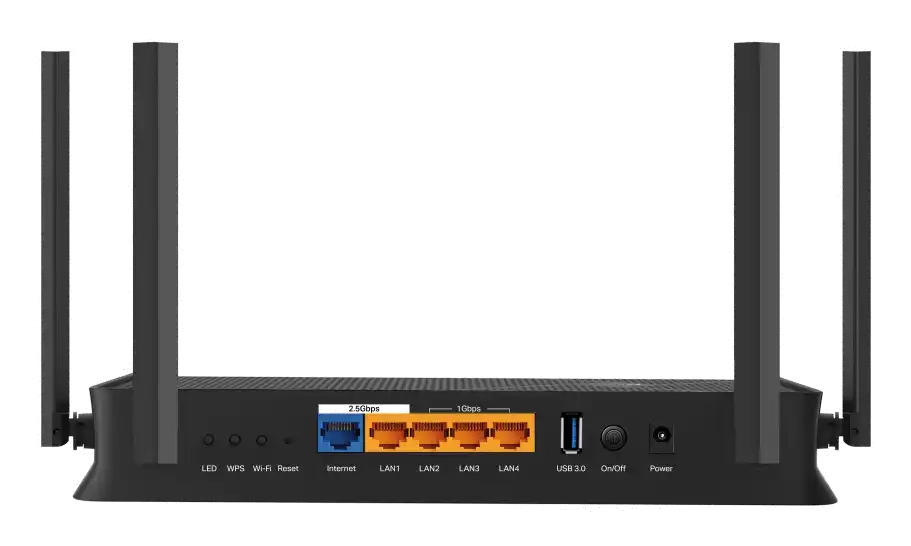 Verbesserte Konnektivität Mit einer Kombination aus Ethernet 2,5 GBase-T- und Gigabit-Ethernet-Schnittstellen sorgt dieser Router für kabelgebundene Hochgeschwindigkeitsverbindungen, ergänzt durch Wi-Fi 6-Technologie für nahtlose drahtlose Konnektivität.