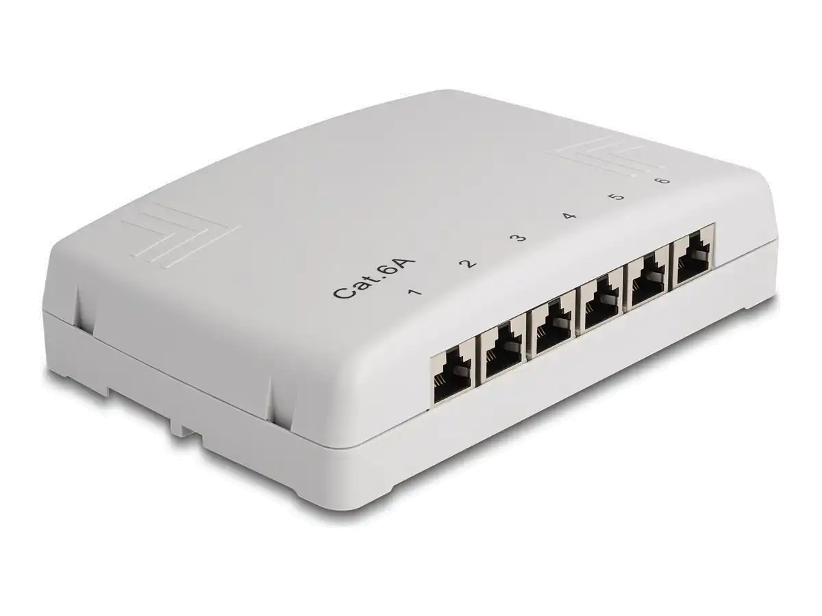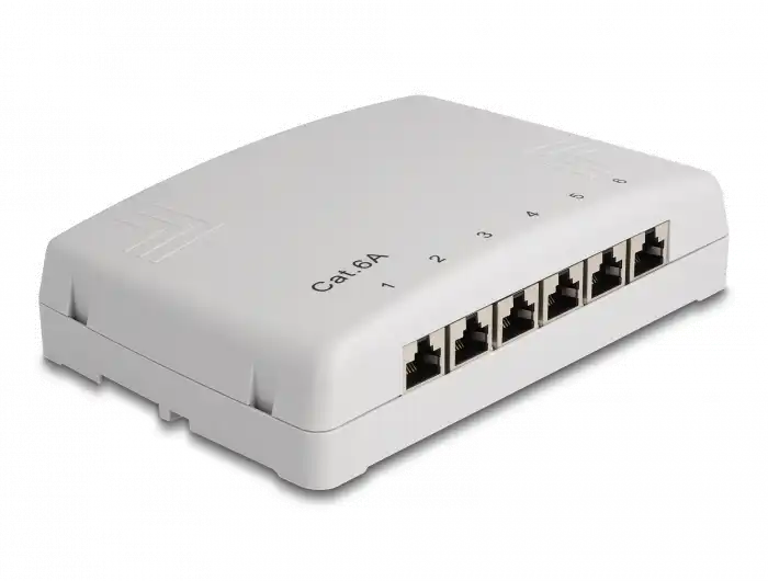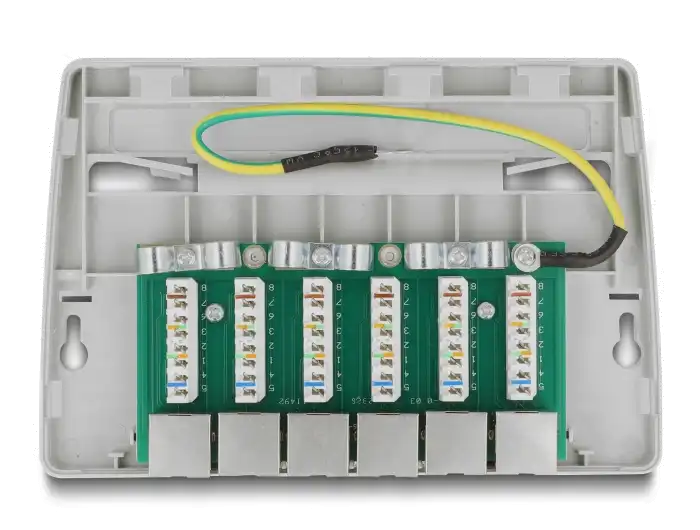 Das Netzwerkzubehör-Patchpanel von Delock ist eine robuste Lösung, die den Anforderungen jeder Netzwerkeinrichtung gerecht wird. Mit seiner Fähigkeit, CAT 6a Voll- und Litzendrähte von 22 - 24 AWG zu unterstützen, bietet es hervorragende Konnektivität und Leistung. Das Panel verfügt über 6 Ports für RJ-45- und LSA-Anschlüsse, was es für verschiedene Netzwerkkonfigurationen äußerst vielseitig macht. Die Installation wird durch die mitgelieferten Dübel, Schrauben, Kabelbinder und einen Erdungsdraht vereinfacht, so dass es unter dem Tisch oder an der Wand montiert werden kann, um allen Platzanforderungen gerecht zu werden. Das aus hochwertigem ABS-Kunststoff gefertigte Patchpanel ist langlebig und gewährleistet eine zuverlässige Netzwerkleistung über lange Zeit. Ob zu Hause oder im Büro, das Patchpanel von Delock ist eine wesentliche Komponente für den Aufbau einer strukturierten und effizienten Netzwerkumgebung.