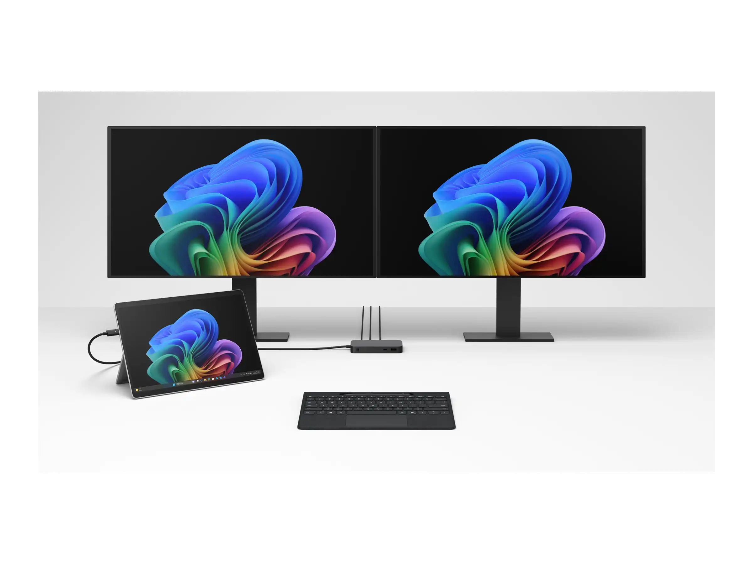 Immersives Audioerlebnis Ausgestattet mit Dolby-Atmos-konformen Stereolautsprechern und Dual-Array-Mikrofonen liefert dieses Gerät einen satten Klang und sorgt gleichzeitig für eine klare Audioeingabe bei Anrufen und Besprechungen.