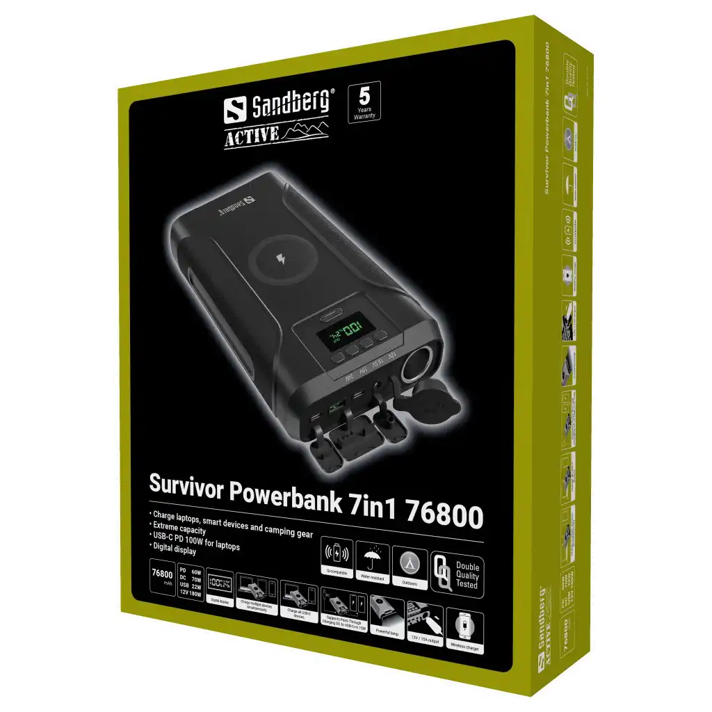 Gefertigt ist die Survivor Powerbank 7in1 76800 aus robustem und wasserfestem Material. Sie eignet sich genauso gut für Abenteuertouren in der Wildnis wie für Außendienstmitarbeiter, die für ihre Geräte viel Strom benötigen.