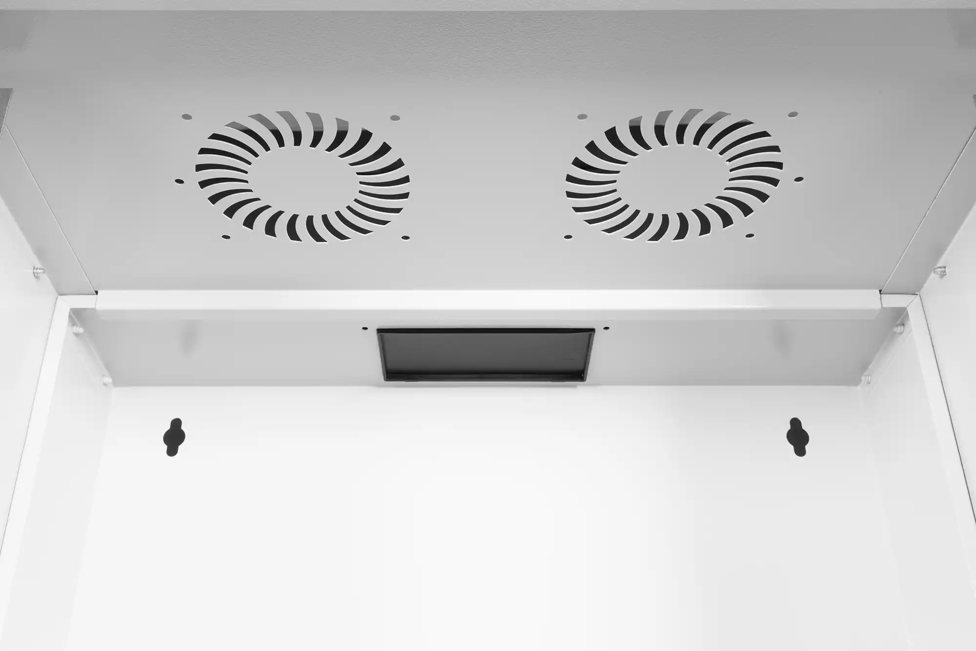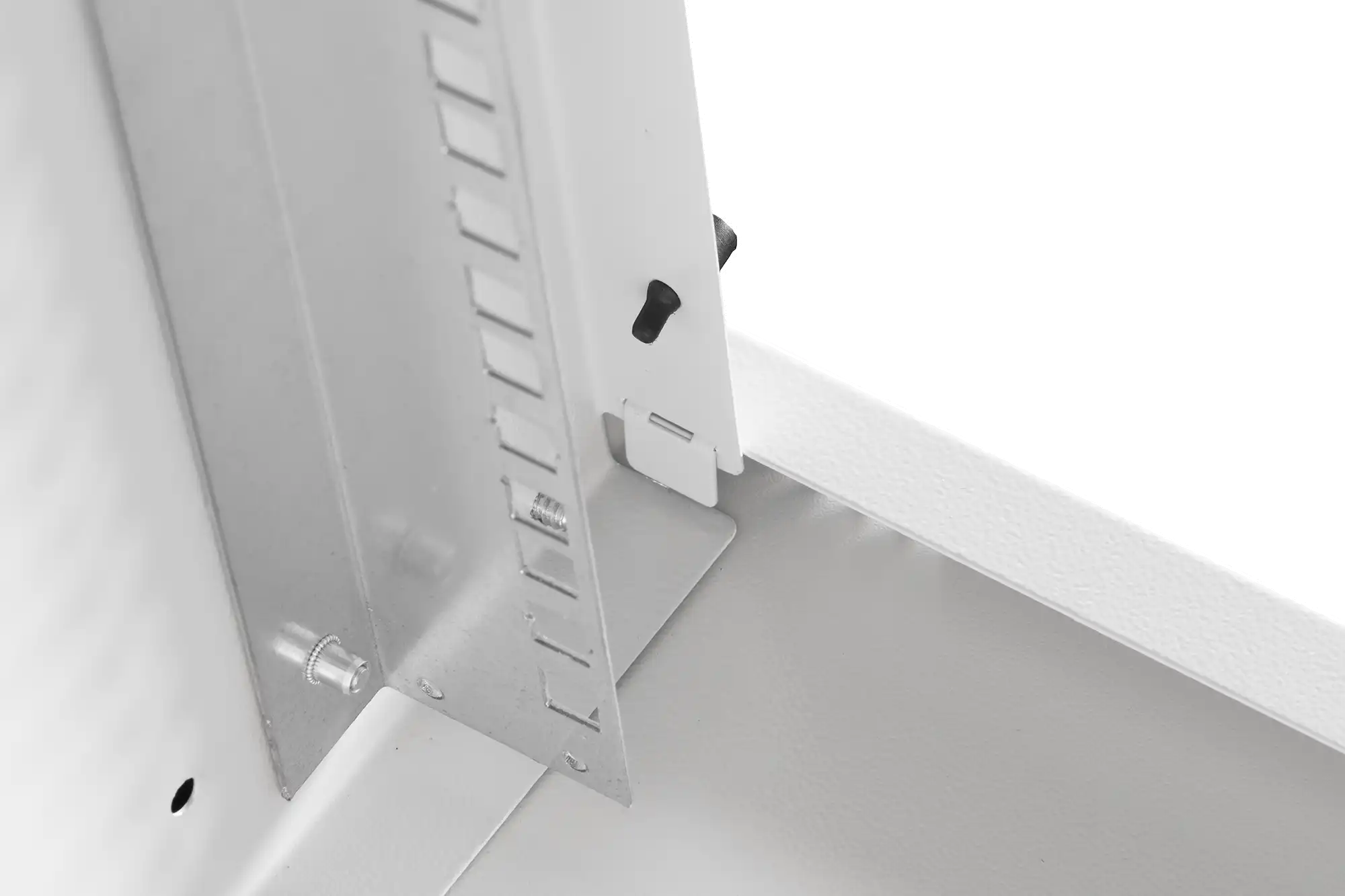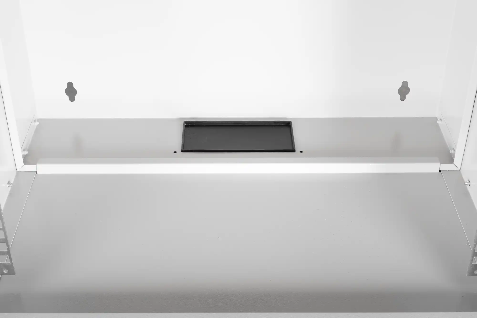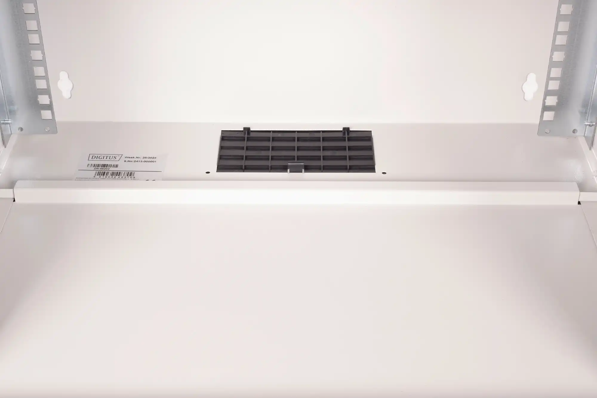 483 mm (19")-Profilschienen an der Vorderseite innerhalb des Schrankes montiert, galvanisiert