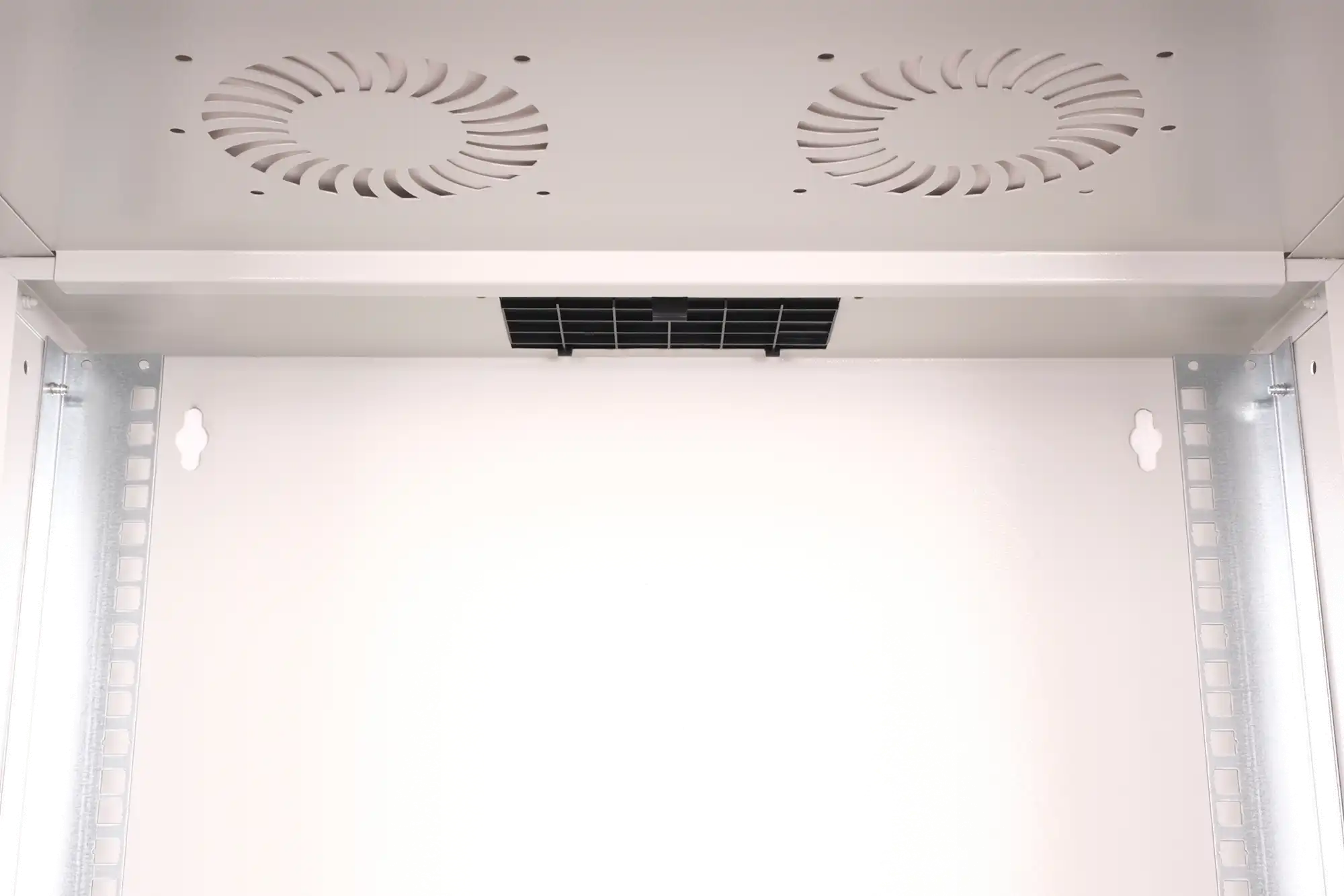483 mm (19")-Profilschienen an der Vorder- und Rückseite innerhalb des Schrankes montiert, galvanisiert