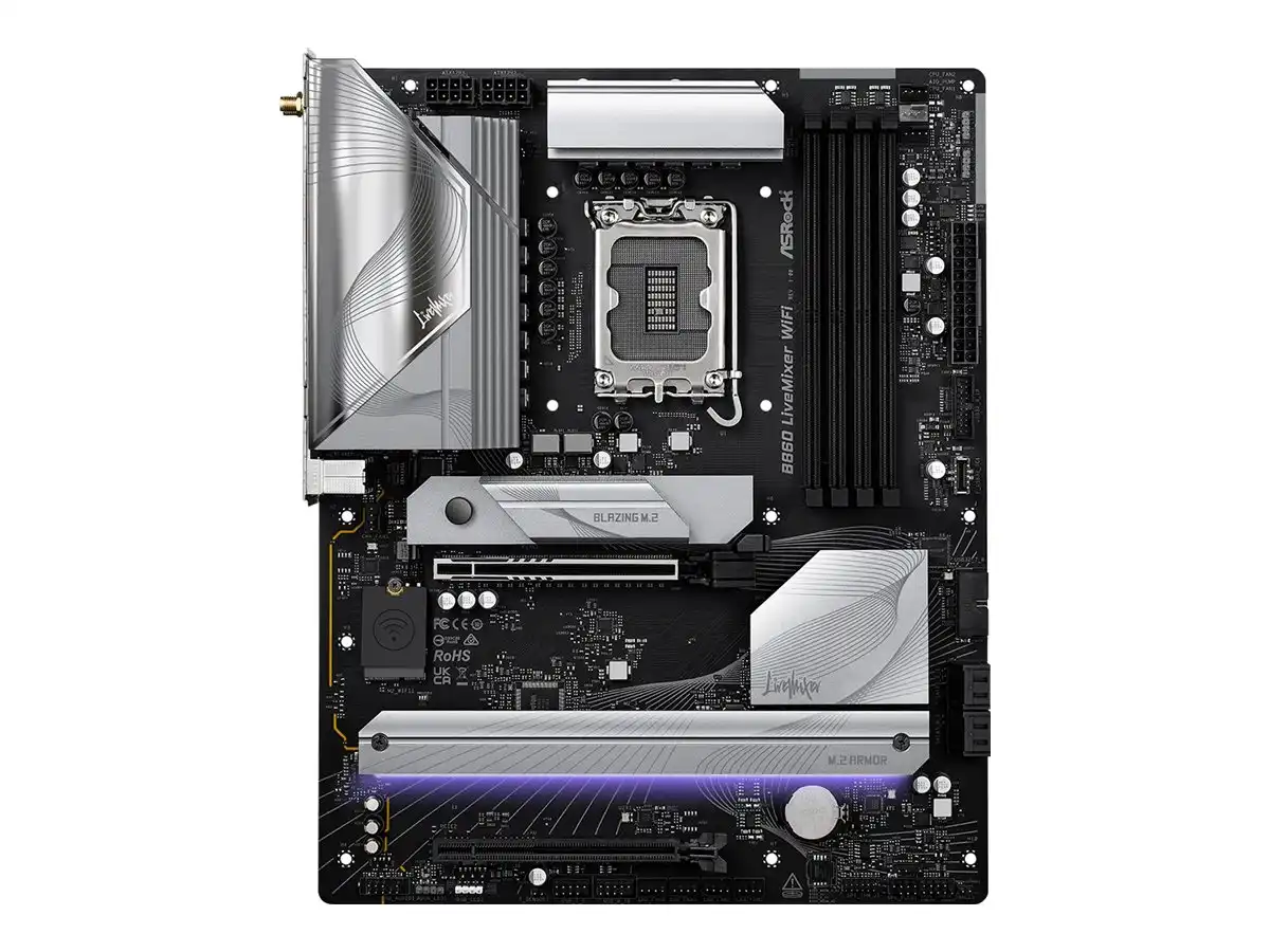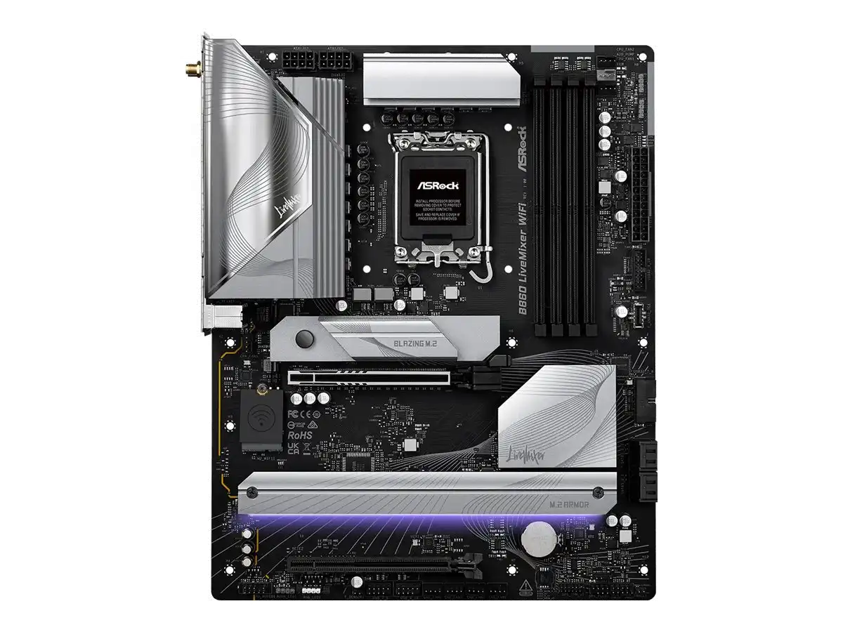 StartseiteKomponentenMainboardsAsrock B860 LiveMixer WiFi DDR5 Intel S1851 retailSKU90-MXBQV0-A0UAYZCLS#4596749Asrock B860 LiveMixer WiFi DDR5 Intel S1851 retail