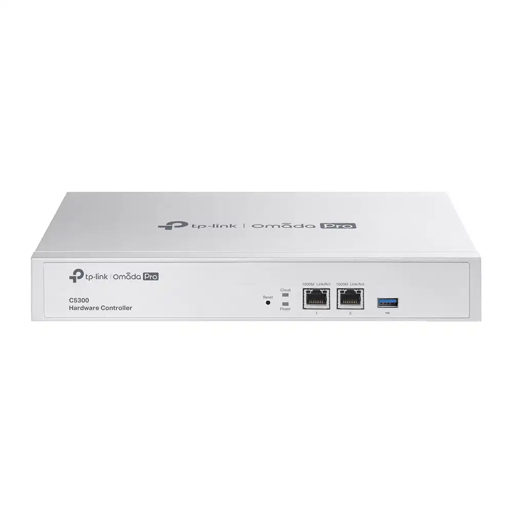 Omada Pro C5300 Netzwerk-Verwaltungsgerät mit 1GbE, cloudbasiert, rack-montierbar, unterstützt bis zu 100 APs, 20 Switches und 10 Gateways.