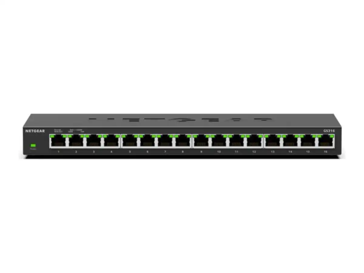 Der NETGEAR GS316v3 wurde entwickelt, um den Anforderungen moderner Netzwerkumgebungen gerecht zu werden. Mit 16 Ports bietet dieser Gigabit-Ethernet-Switch Hochgeschwindigkeitsverbindungen für eine Vielzahl von Geräten. Mit einer Weiterleitungsleistung von 32 Gbit/s und einer Kapazität von bis zu 1.448.000 Paketen pro Sekunde gewährleistet dieser Switch eine reibungslose Datenübertragung und eignet sich somit sowohl für den privaten als auch für den geschäftlichen Einsatz. Sein kompaktes, wandmontierbares Design ermöglicht flexible Installationsoptionen, während der lüfterlose Betrieb einen leisen Betrieb in jeder Arbeitsumgebung gewährleistet. Der Switch verfügt über Funktionen zur Steigerung der Effizienz und Zuverlässigkeit. Auto-Negotiation und Auto-Uplink-Funktionen vereinfachen den Einrichtungsprozess. Die Quality of Service (QoS)-Funktion priorisiert den Datenverkehr und stellt sicher, dass kritische Daten die erforderliche Bandbreite erhalten. Darüber hinaus reduziert die Energy-Efficient Ethernet (EEE)-Technologie den Stromverbrauch in Zeiten geringer Aktivität und macht den Switch zu einer umweltfreundlichen Wahl. Mit einem robusten integrierten Paketpuffer von 4,1 MB und Unterstützung für Jumbo-Frames mit bis zu 9216 Byte ist der NETGEAR GS316v3 für anspruchsvolle Anwendungen gerüstet.