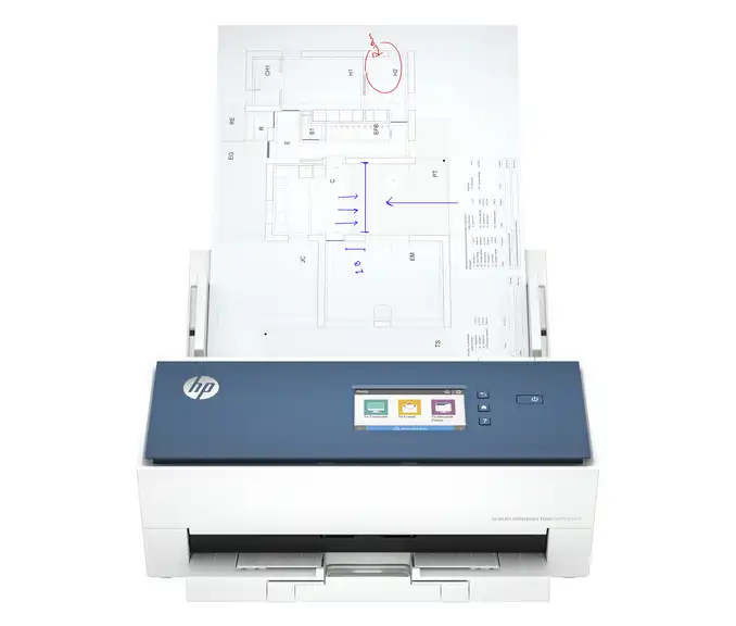 HP ScanJet Enterprise Flow N9000 sn1 eignet sich ideal zum Scannen großformatiger Dokumente, zur problemlosen Handhabung großer Volumen und zur Netzwerkkonnektivität für eine nahtlose Integration in Büroumgebungen.