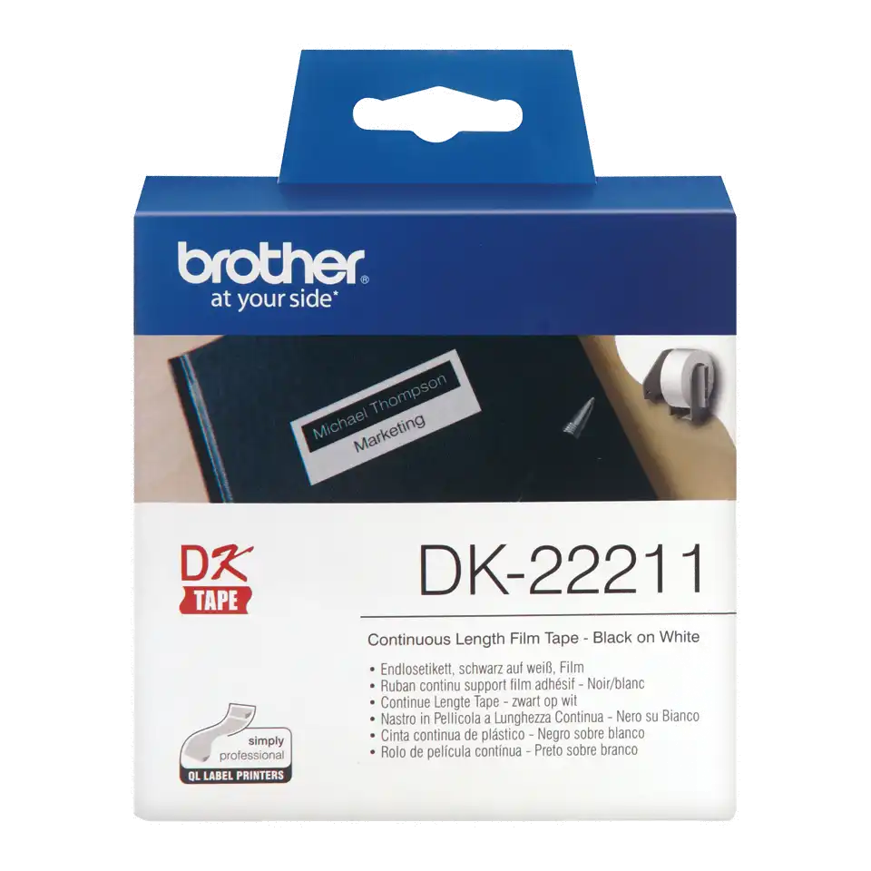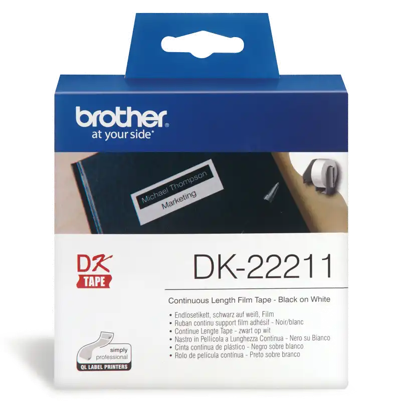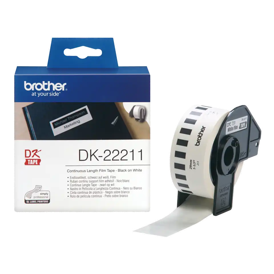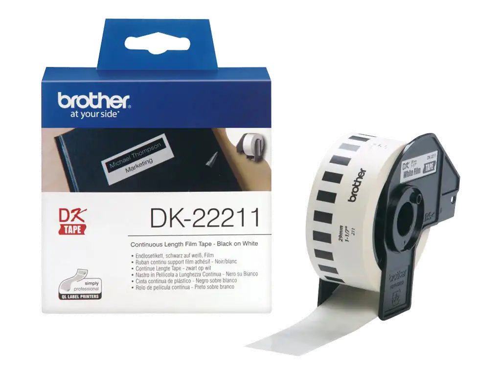 ProduktbeschreibungBrother DK-22211 - Etiketten - Rolle (2,9 cm x 15,2 m)ProdukttypEtikettenMediengrößeRolle (2,9 cm x 15,2 m)DrucktechnologieDirekt thermischMedienfarbeWeißKompatibel mitBrother QL-1050, QL-1050 TypeA, QL-1050N, QL-1060N, QL-1110NWBc, QL-500, QL-500A, QL-500A (50TH Year Anniversary Model), QL-500BS, QL-500BW, QL-550, QL-560, QL-560VP, QL-570, QL-580N, QL-600, QL-600B, QL-650TD, QL-700, QL-710W, QL-710WSP, QL-720NW, QL-820NWTechnische Daten