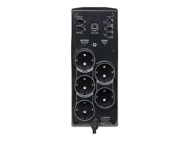 4 "batteriegestützte und überspannungsgeschützte" Steckdosen sorgen dafür, dass CPU, Monitor und andere kritische Geräte weiterlaufen, wenn der Strom ausfällt oder außerhalb des sicheren Bereichs schwankt